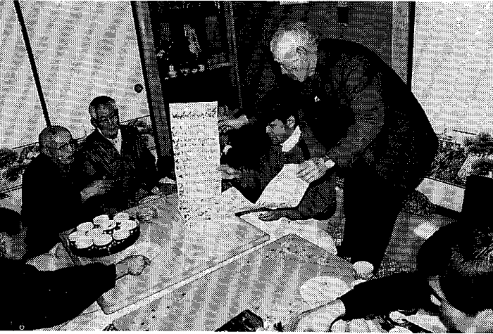 大字林の堀の内地区で初天神の1月25日にお茶講を行い、新しい年の作物の豊作・凶作を占う。