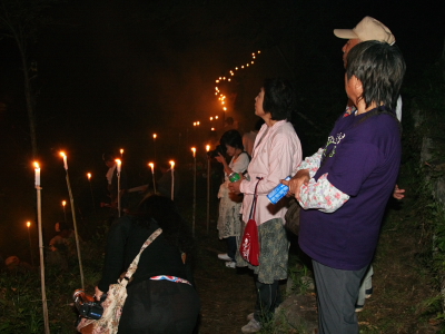 地区内の子供たちが毎戸より盆かざりの竹を集めてきて松明にし、三ツ堂を中心とした沿道に灯す。(近年では子供の減少により大人も参加)