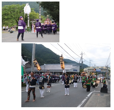 笠科神社境内及び鎌田商店街に村内各地の神輿が集合