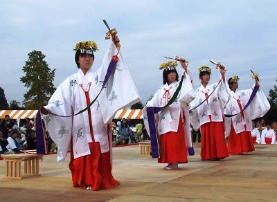 浦安の舞は、昭和15年の皇紀二千六百年奉祝臨時祭に合わせて全国に発表され全国で舞われています。これは神楽のひとつで前半の扇舞と後半の鈴舞があります。笹森稲荷神社でも83年間にわたり舞い継がれています。