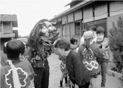 今から230年前ころ、天災飢饉になり農民は、病気や疫病になり苦しんでいた。そこで、牛頭天王を招致して、除疫をしたのがはじまりだと聞いている。八坂神社には牛頭天王が祀られている。上箱田地区を二つに別れて、牡獅子と牝獅子と太鼓、ほら貝を持って各隣保班長宅を廻る。