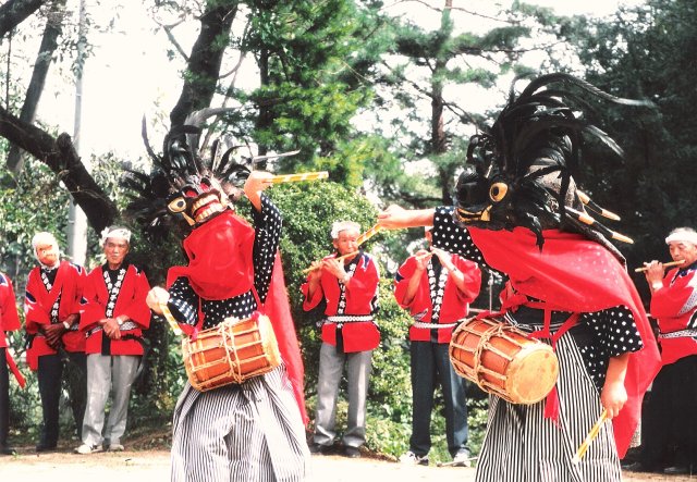 概要 | 江戸の中期頃、岡崎から導入したと伝えられている。資料を焼失してしまったため定かなことはわからないが、五穀豊穣と家内・地区の安全を願い、毎年下田沢の十二山神社(地元では、じゅうにさまとして親しまれている)にて奉納される。 平成11年(1999)桐生市指定重要無形民俗文化財。 【前田原獅子舞(ささら舞)】桐生市 |