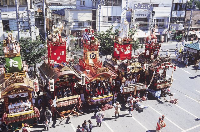 概要 | 沼田祇園祭は、天正18年(1590)に現在の下之町に牛頭天王宮が祀られて以来、その歴史は400年に及ぶ。祇園囃子がいつの時代に伝えられたか定かではないが、江戸末期から明治初期にかけて前橋市近郊から伝わったと推測される。現在の吹奏形態については、明治18年の「上之町祭典録」の中に山車についての記述がみられ、この頃からと考えられる。祭りが衰退した時期もあったが、昭和54年に沼田祇園囃子保存会連合会が結成され、後継者育成と保存活動を実施している。平成7年には沼田市の重要無形民俗文化財に指定された。現在、「さんてこ」「テケテットン」「吉原かんら」「龍まわし」「麒麟」「夜神楽」が伝承されている。お囃子は笛1名、大太鼓1名、鉦2名、締太鼓3~4名で構成され、沼田まつりの際には華麗な山車の上で奏でられる。 【沼田祇園囃子】沼田市 |