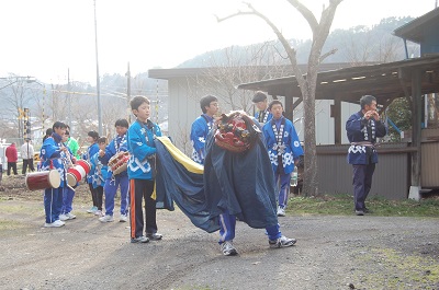 概要 | 羽根尾の獅子舞の創始は明らかでないが、1570年頃、羽根尾城主の海野一家が諏訪神社に奉納したのが始まりとの伝承もある。現在の舞は明治の頃の様式を伝えているという。大正5年頃、嬬恋村大笹に伝わる獅子舞より伝授を受けておりこのことにより長野原の獅子舞と同じ流れを汲むとも考えられる(「長野原町の民俗」参照)。 毎年、羽根尾神社の春祭りに演じられている。まず4月10日午後3時頃、神社の社務所にて舞初めをし二手に分かれ地区内を各戸まわりする。翌11日の祭典当日神社にて奉納舞が行われる。昭和47年「羽根尾獅子舞保存会」が結成され伝承に努めている。 演目は、道中ばやし、幕の内、本舞である。 【羽根尾獅子舞】長野原町 |