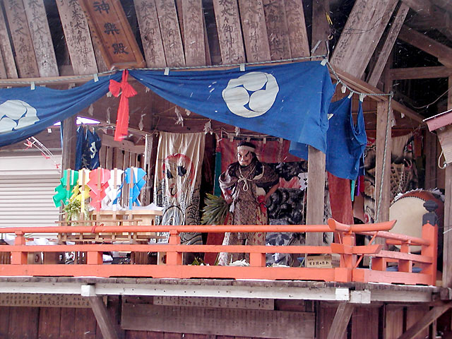 概要 | 松谷神社の神楽の奉納は古く嘉永5 年(1852)という記録がある。現在演じられている神楽は明治15年(1882)武蔵の国御獄神社の神楽が伝えられたもので、現在に至るまで氏子が大切に伝承 している。それを物語るように、境内には明治35年(1902)建立の「神楽講20年記念碑」の他、節目毎の記念碑がある。 【松谷神社の太々神楽】東吾妻町 |