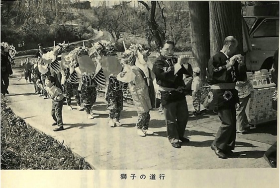 概要 | 獅子舞が、いつ頃より始められたかは、記録がないためはっきりしないが、現在発見されている古いものとしては、文政4年(1821)の文書に「畔宇治大明神例年四月八日祭禮に獅子舞奉納」ということが記され、さらに「前々より」ともあって、文政4年以前より奉納されていたことははっきりするが、年代などについては不明である。口伝によれば、獅子舞はもともと古賀良神社のもので、上大戸だけで獅子を管理しているが、明治の神社合併によって畔宇治神社においても、獅子舞を奉納するようになったといわれる。 畔宇治神社の祭典は、春は4月、秋は11月で、当日獅子舞が奉納される。舞は子供獅子三組と大人獅子一組からなる。(子供獅子の低学年の部は、体格的に無理なこともあって、獅子頭は身につけず、祭りのハッピに鉢巻と小太鼓といった姿で舞う。) 大戸公民館の前で「宮振り」を舞って出発、「道行」という行進隊形で大戸宿を経て神社へ向かう。アンドン、狐(カンカチ)、前獅子(黒獅子)、中獅子(赤獅子)、後獅子(黒獅子)、花笠(ささら)、そして子供組と行列を組む。帰る時は「振込み」を舞い、全部が終了となる。 獅子は小太鼓に撥、狐は金の棒、花笠は獅子舞独特の「ささら」という竹を割った楽器を使用する。 後継者不足にて一時中止せざるを得なくなった時期もあったが、その後、大戸区全域に呼びかけ、昭和62年に獅子舞保存会が結成、12年ぶりに復活となり、現在に至っている。 舞いは全部で17あり、「五穀豊穣・家内安全」と書かれた大きな万燈が立つ社殿を一周して、神前の広場で子供組、ついで大人組が舞いを奉納する。 舞座:①チャーリャウトウロウ ②チーロリ ③ヒキヤ(ヒーリャリトヒャリ) ④振込み ⑤飛違い ⑥チャーリャウト ⑦ヒキヤ ⑧宮振り ⑨岡崎 ⑩デンジ ⑪トヒャリ ⑫どじょう猫 ⑬担ぎ(俵担ぎ) ⑭ヒーヒ ⑮家敷返り ⑯左ねじり ⑰おおやれい 【畔宇治神社獅子舞】東吾妻町 |