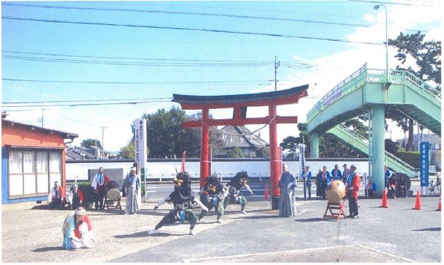 概要 | 起源は、不詳であるが文政3年(1820)と云われており、天保8年(1837)に獅子舞奉納の款書・届書の古文書がありおよそ200年前から獅子舞が伝承されていた事がわかる。貝沢には、西組と東組の流派の異なる獅子舞があり、当西組は、鎌倉流、東組は稲荷流でいつも競い合っていた。 西組の流派の鎌倉流の由来は、五霊神社の祭神の鎌倉権五郎景政の「鎌倉」をいただき流派の名前としたと云い伝えられている。 村社五霊神社には、「悪霊退散・家内安全・五穀豊穣」を祈念することを目的として奉納してきた。いずれも氏子によって組織され、演舞者は氏子の中の長男から選抜されて伝統が引き継がれてきたが、現在は、自由になってきた。 又、西組の獅子舞は勇壮でかつ品格があると近隣にその名をうたわれていた。 演目は、「道中しゃぎり」「大門掛り」「橋掛り」「まきだし」「にこみ」「岡崎」「くり」「岡崎くずし」。 【貝沢西組の獅子舞】高崎市 |