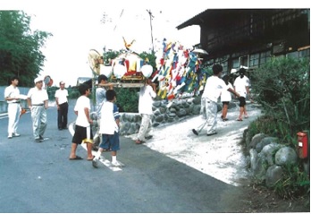 子供たちがあらかじめ準備しておいた神輿に地蔵尊を乗せ、地区内を廻る。