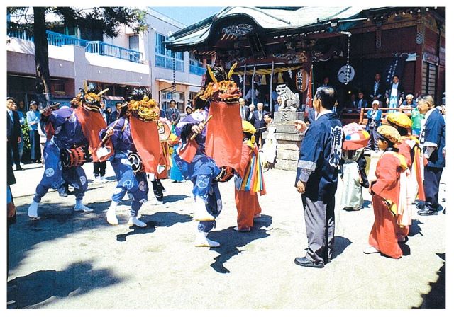 概要 | 清水とは地名である。清水の獅子舞はかなり古いと言われているが、古老の言い伝えによると、元禄時代頃からはじめられ今日に伝承されている。 流派は「稲荷流」。現在の獅子頭は「明治二十二年上野国西群馬郡高崎駅下横町住人飯島沖二信重爾時七拾六才作」と記されている。 その後、昭和11年9月10日の「白衣大観音開眼式」の奉納にあたり、獅子頭の塗替えをした。(並榎町:高崎工芸美術研究所) 当清水には、諏訪神社、常磐神社、稲荷神社の三社があり、この三社筆頭の諏訪神社の祭りに毎年奉納していた。その後、村の鎮守様の小祝神社一つにし、明治初年頃より毎年7月27日の小祝神社大祭に奉納していた。昭和になって毎年4月29日の「招魂祭」に奉納してきた。最近は、小祝神社(春の大祭4月19日または秋の大祭10月19日のどちらかに奉納)を中心として、護国神社や町内の公民館行事の文化祭、敬老会、小学校の行事等に出演している。 「伝承」対応として、清水公民館で毎週1回の舞・笛・詠などの個々の練習を行っており、三拍子そろった総合練習を春・秋と各 10日間の練習をしている。 なお、平成31年2月13日付で、高崎市重要無形民俗文化財の指定を受け、伝承技術を後世に伝えていきたいと思います。 【石原町清水獅子舞】高崎市 |