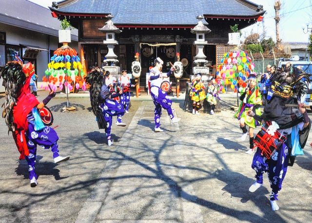 概要 | 浜川町の獅子舞は、小学生の演舞により地元の榛名神社に奉納される神事です。起源は古く、江戸時代初期約380年以前とされています。言い伝えでは、昔、浜川町近隣の地は水利の便が悪く、日照りが続き田植えが出来ない年が度々あったため、獅子舞を奉納し雨乞いを行ったのが始まりとされています。 このように、伝統ある当町の獅子舞も、時代の趨勢により昭和24年の新稽古を最後に、その歴史を閉じようとしておりました。しかし、昭和54年に町内の有志の熱意と努力により、30年ぶりに復活し、保存会も結成され現在に至っています。 【浜川町の獅子舞】高崎市 |