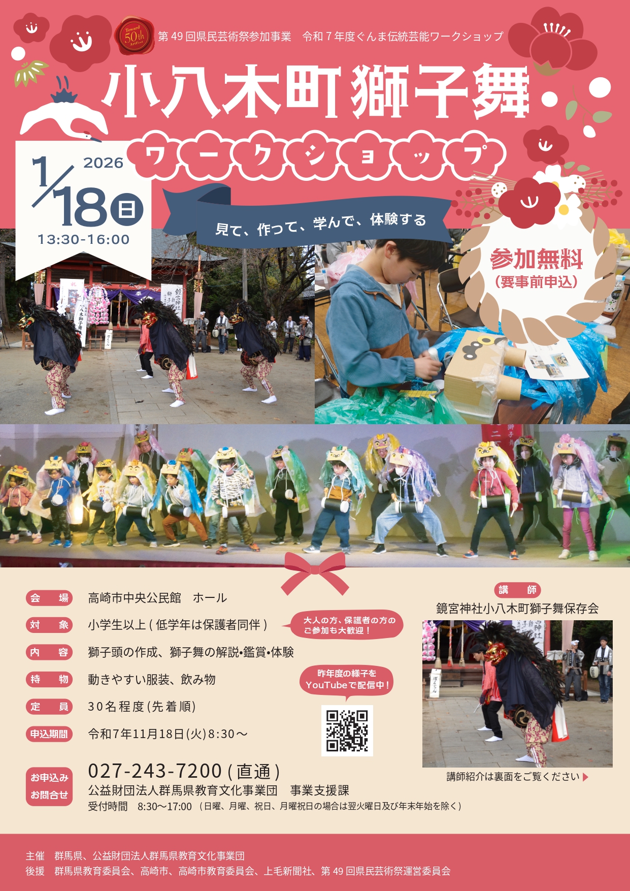 ◇申込み・問合せ◇電話027-243-7200(8:30~17:00 日曜・月曜・祝日・月曜祝日の場合は翌火曜を除く)
