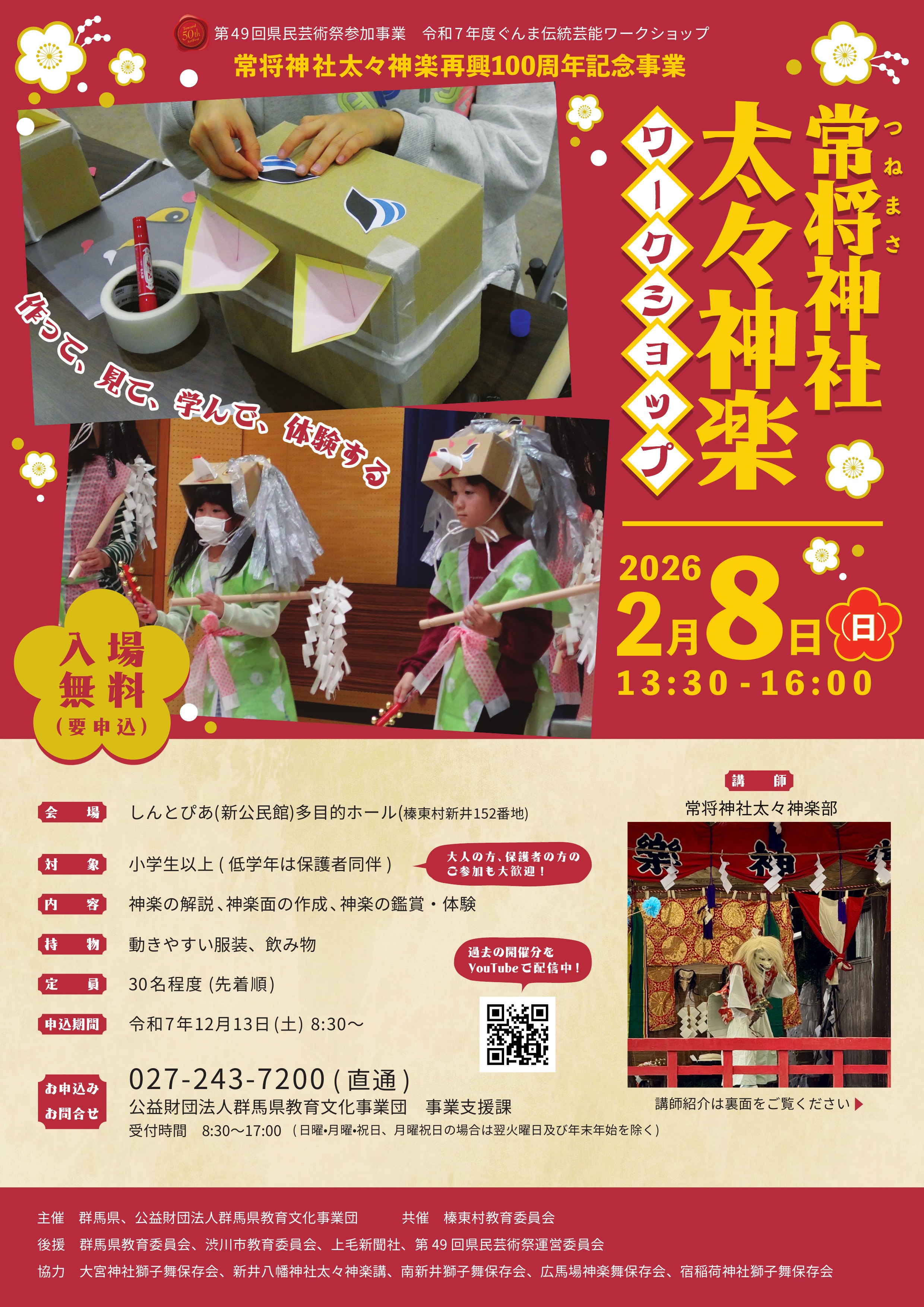 - 令和7年度県内大学連携伝統文化の魅力発信・啓発事業 群馬県立女子大学群馬学センター地域連携事業 ぐんまの民俗芸能 in 県立女子大 vol.5~~神楽~