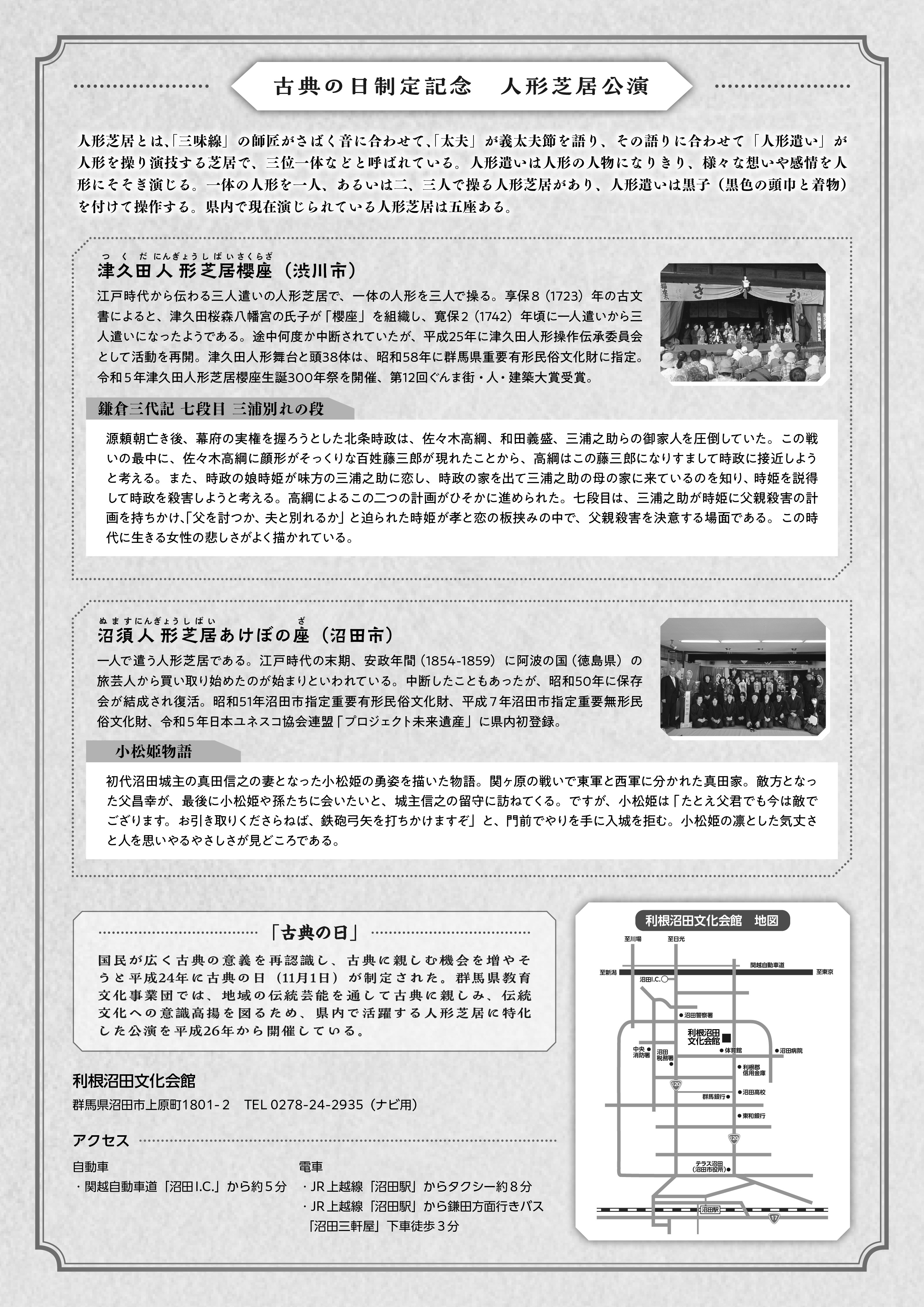 - 古典の日制定記念 人形芝居公演